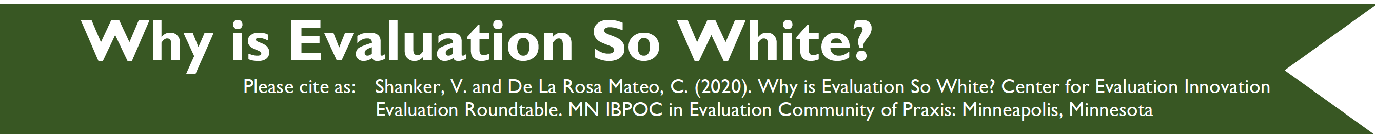In this presentation, Vidhya Shanker, PhD, and Carolina De La Rosa Mateo, MPH, explore how the field of evaluation has approached race, the implications of that approach, and the promise of generative networks to amplify the work of evaluators who identify as Indigenous, Black, or People of Color (IBPOC), as illustrated by one such network recently formed in Minnesota. Specifically, the webinar discusses whiteness with respect to the evaluation field’s